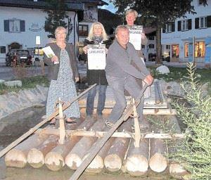 Alle guten Dinge sind diesmal zwei, denn wir haben zum zweiten Mal in diesem Jahr eine Auszeichnung vergeben können (siehe Krün 1.3.2012). Diesmal ging sie nur einige Kilometer weiter südlich: nach Mittenwald. Denn dort ließen Carolin Gallmetzer, Christel Veit, Wirtin vom Gasthof Stern, und Architekt Peter Angele am Fritz-Prölß-Platz ein Floß errichten.