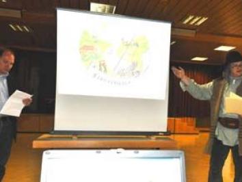 Am Samstagabend luden die Organisatoren um Werner Grimmeiß die Gäste und alle Freunde Manzanos in die Mehrzweckhalle Farchet zu einem gemütlichen Beisammensein. Einen kurzweiligen Beitrag leisteten wir mit einem mit Fotos und Bildern begleiteten Vortrag über die Geschichte der Flößerei in Wolfratshausen. Ein begeisterter Applaus folgte der temperamentvollen, deutsch-italienischen Einlage, denn Vizevorsitzender Hermann Paetzmann sprach als Flößer Hartl den deutsch/bayerischen Text, Stadtrat Maurizio Faganello dessen Schwester Cristina im Vorfeld den Text übersetzt hatte den italienischen. In einem ebenfalls zweisprachigen Quiz konnten anschließend Gäste und Gastgeber ihr Wissen über die Flößerei testen. Alle Fragen richtig beantworteten Regine und Ludwig Hölzl, Wasenweg 10, Wolfratshausen, sie gewann eine Floßfahrt für 2 Personen bei Floßmeister Franz Seitner.