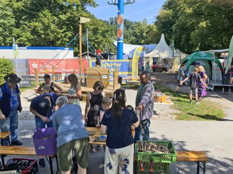 Am letzten Tag des Wolfratshauser Fluss Festivals, fand das Familienfest "Family Fun Festival" statt. Unserem Vizevorsitzendem Peter Fischer gefiel es so gut, dass er sogar einen Film darüber gedreht hat. Unser Verein bot - passend am Spielefloß - unter anderem Flößebasteln an. Es wurde bestens angenommen. Zudem lud der Verein die Sponsoren, die das Spielgerät mitfinanziert hatten, und Unterstützer zur Besichtigung des Spielefloßes und anschließend zu einem Dankeschön-Umtrunk ins Wirtshaus Flößerei ein. Nicht alle hatten Zeit, aber die, die kamen, hatten richtig Freude! Außerdem prangen jetzt 2 kleine Tafeln am Spielefloß mit dem Hinweis auf unsere Projekt.